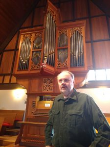 Curt began his association with Faith Lutheran when he was asked to figure out why a pipe wasn’t working. He solved that problem by removing the dead bird. The birds apparently learned their lesson, so the organ was in good shape when Curt began his demonstration. Using Bach chorale preludes, he showcased individual stops, groups of stops, and full organ.