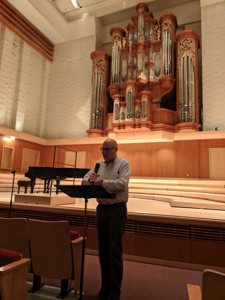 Afterward, the group headed over to Lagerquist Hall, home of Fritts Organs Opus 18, to hear dual member Joseph Adam present a lecture-demonstration on the life and works of Louis Vierne.