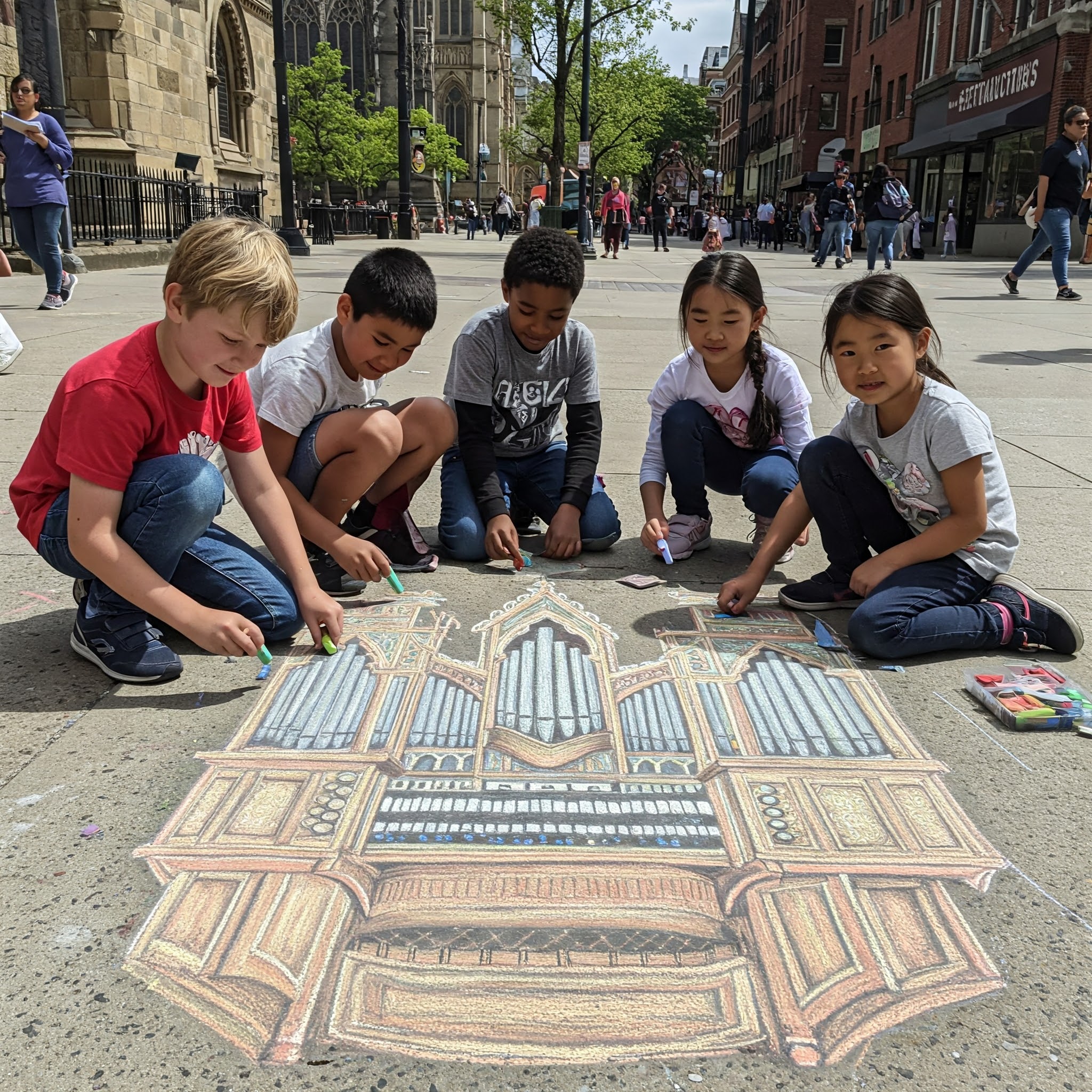 kids drawing organ with chalk