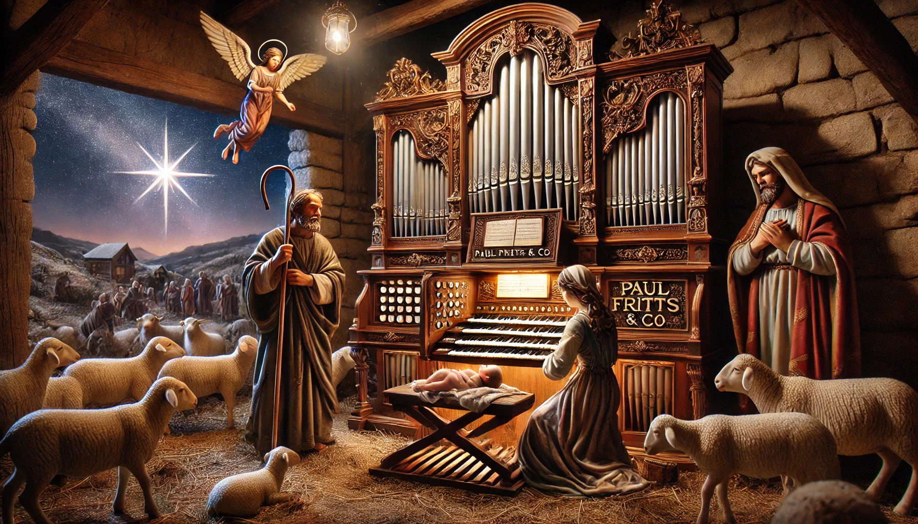 manger scene with Fritts organ December 2, 2024 1792 × 1024 manger scene with Fritts organ manger scene with Jesus asleep on the Fritts organ bench