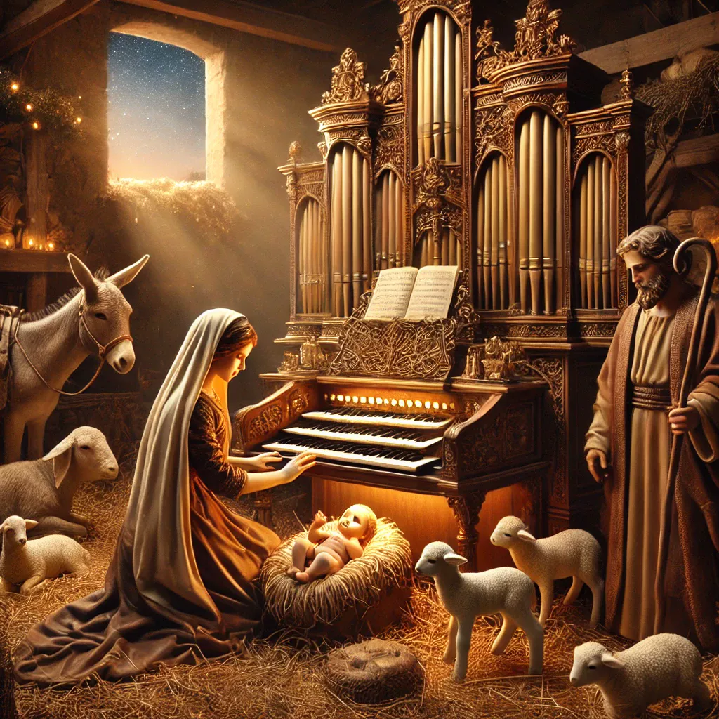 manger with Mary playing organ December 1, 2024 1024 × 1024 manger with Mary playing organ Manger scene with Mary playing organ